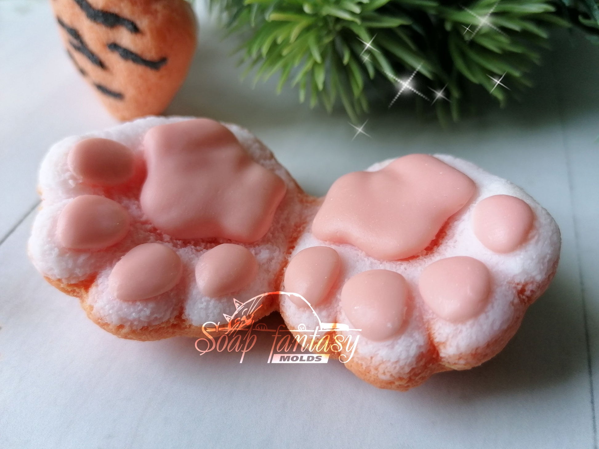 Fluffy tiger / cat paws silicone mold (mould) for M&P soap making and candle making