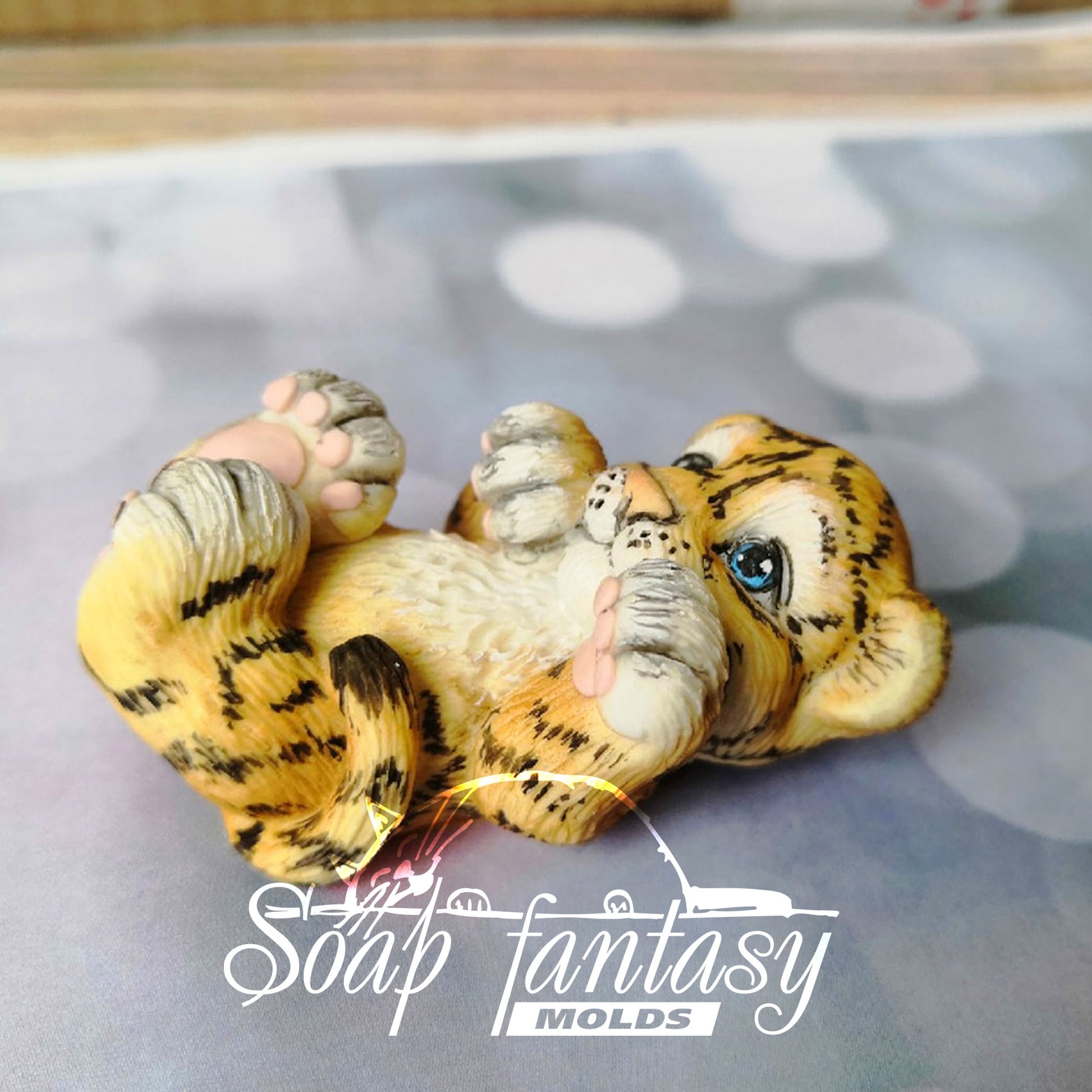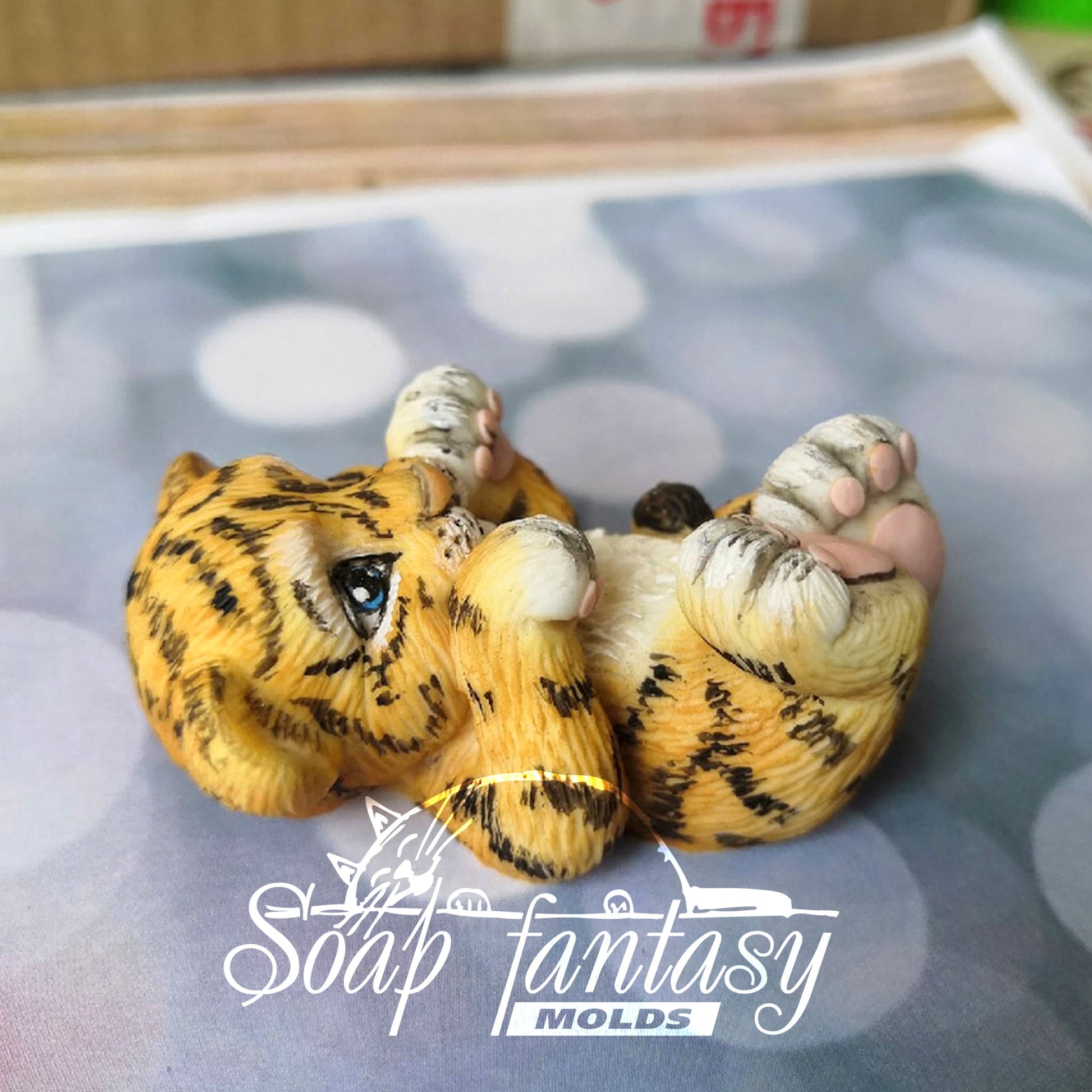 So cute tiger baby cub lying on its back Silicone Soap Mold - for soap making, Craft & Hobby