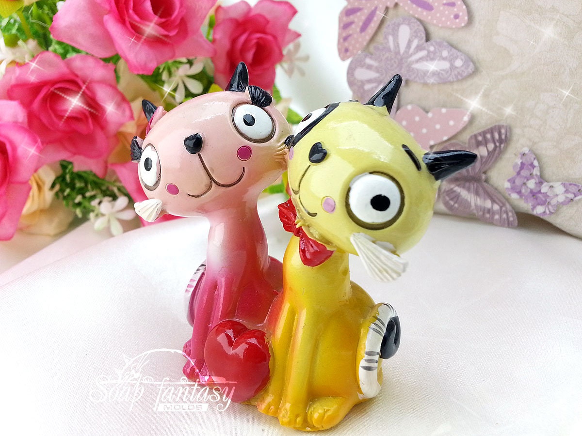 Two kindly cats silicone mold (mould) for M&P soap making and candle making